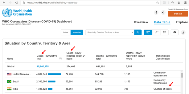 One last thing, what are “cases – newly reported” (shown in the table of WHO) or “new cases” (shown in the second table of worldometers)?